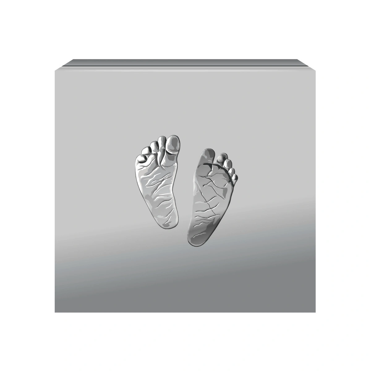 Reverse: an incuse design presenting adorable baby footprints, as if pressed into sand. The delicate, minimalist motif underscores the coin’s emotional character and its symbolism—preserving the earliest memories in precious metal.
