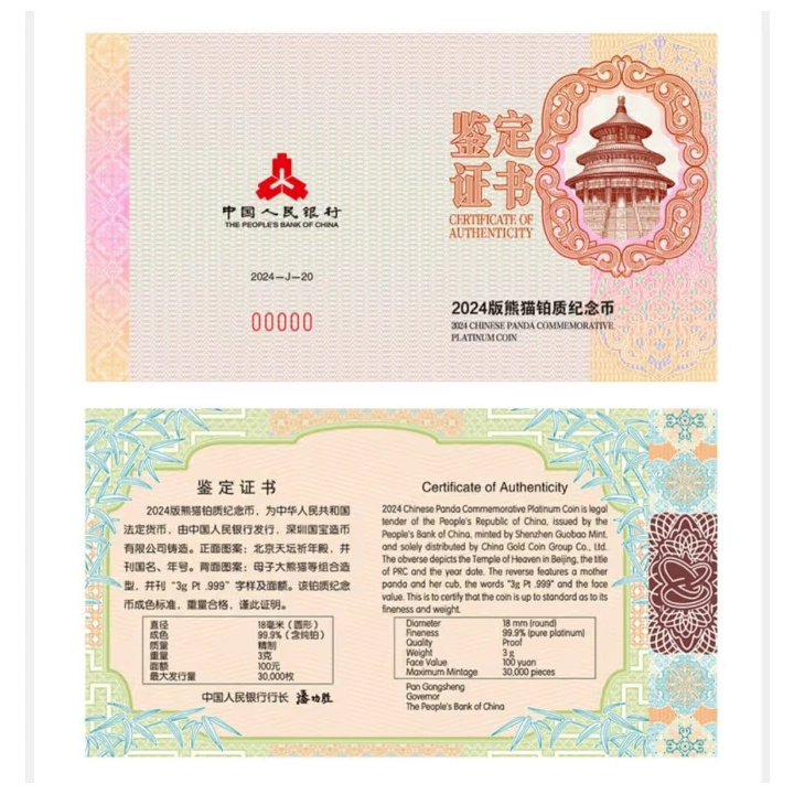 Chinese Panda 3 gram Platium 2024 Proof