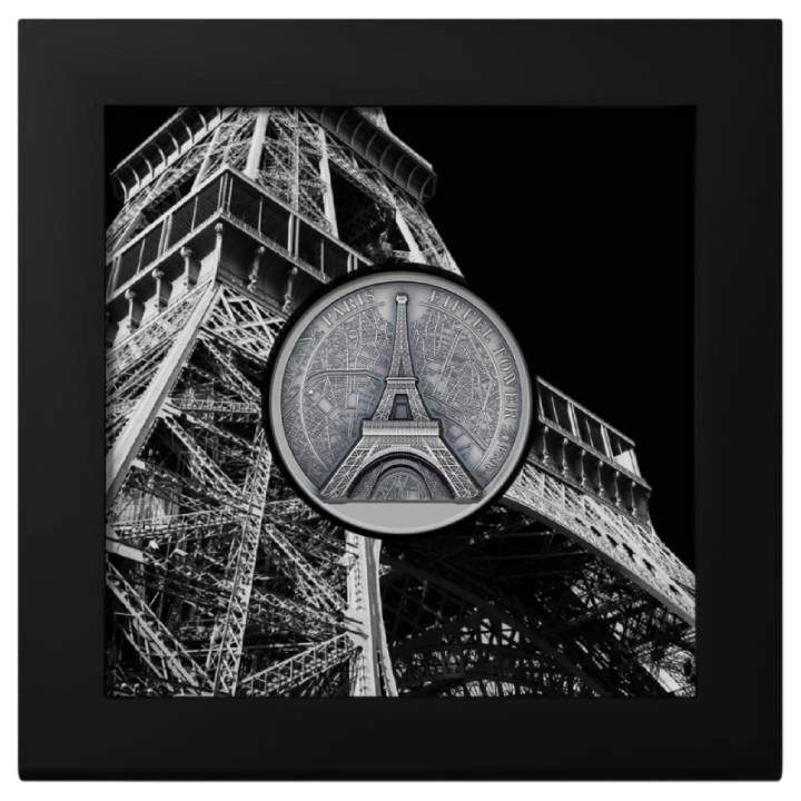 The reverse features the Eiffel Tower in Paris, France, the inscription "PARIS EIFFEL TOWER" and the year the coin was struck.