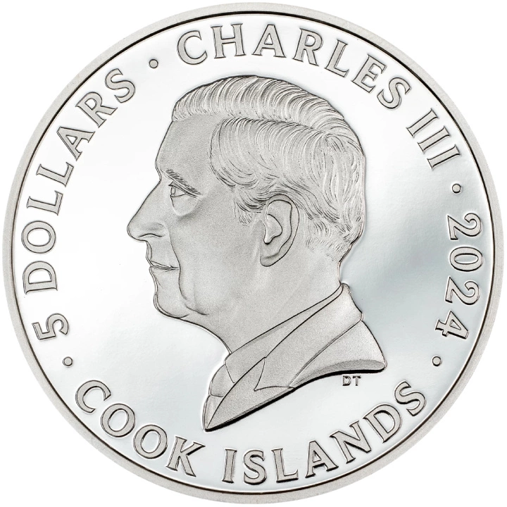 The coin was produced in pure Ag.999 bullion, weighing one troy ounce and measuring 38.61 mm in diameter, in obsidian black. The mintage of the coin is 1,992 pieces. The product is full legal tender in the Cook Islands. The Overt shows an image of Queen Elizabeth II, the inscription "ELIZABETH II", "COOK ISLANDS" and the denomination and year. The obverse was designed by Ian Rank-Broadley.