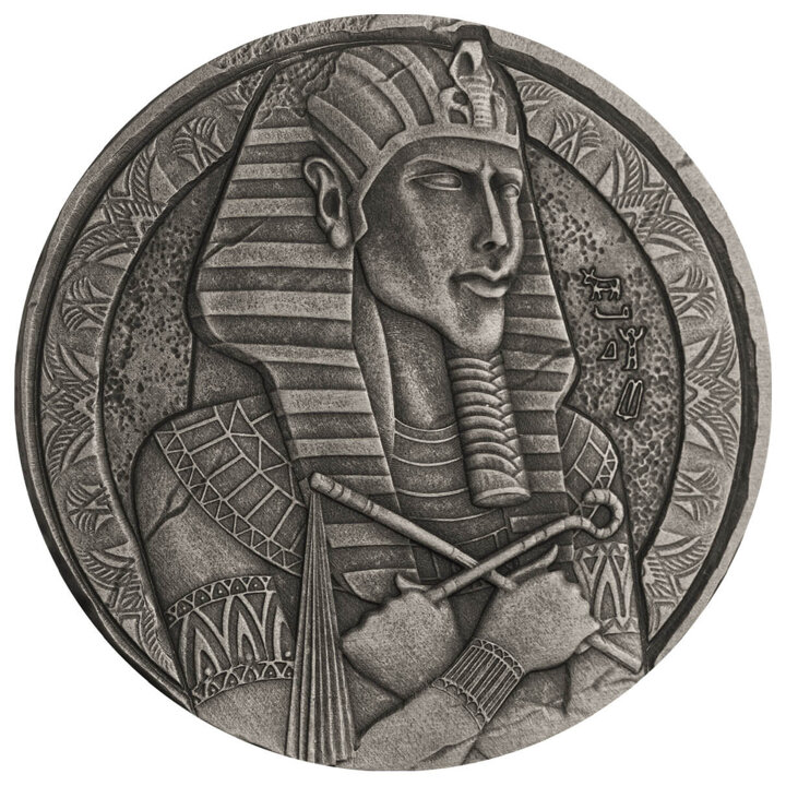 Chad: ERS - Amenhotep IV 5 oz Silver 2023 Antiqued Coin is a unique product that represents one of the most revolutionary the rulers of ancient Egypt, Pharaoh Akhenaten, also known as Amenhotep IV. His rule in the 18th dynasty brought about a significant change in Egyptian religion and culture.