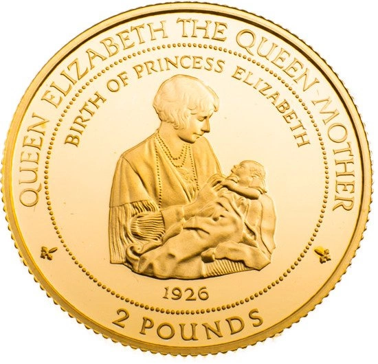 A collector's gold coin that was struck to commemorate the Queen Mother Elizabeth Bowes-Lyon. The coin was struck with a mirror stamp in 14 carat gold with a total weight of 7.776g. The entire set includes the gold coin, elegant packaging and a certificate of authenticity, plus the coin's limited mintage of 5,000 makes this gold coin ideal for adding to unique collections.The obverse of the coin features the likeness of Queen Elizabeth II.The reverse depicts the Queen Mother holding her daughter, the future monarch, in her arms. Above the illustration is the inscription BIRTH PRINCESS ELIZABETH, below is the year of Queen Elizabeth II's birth.All is surrounded by the inscription QUEEN ELIZABETH THE QUEEN MOTHER and the denomination of the coin. Do you need help? Do you have any questions?Ask a question and we'll respond promptly, publishing the most interesting questions and answers for others.