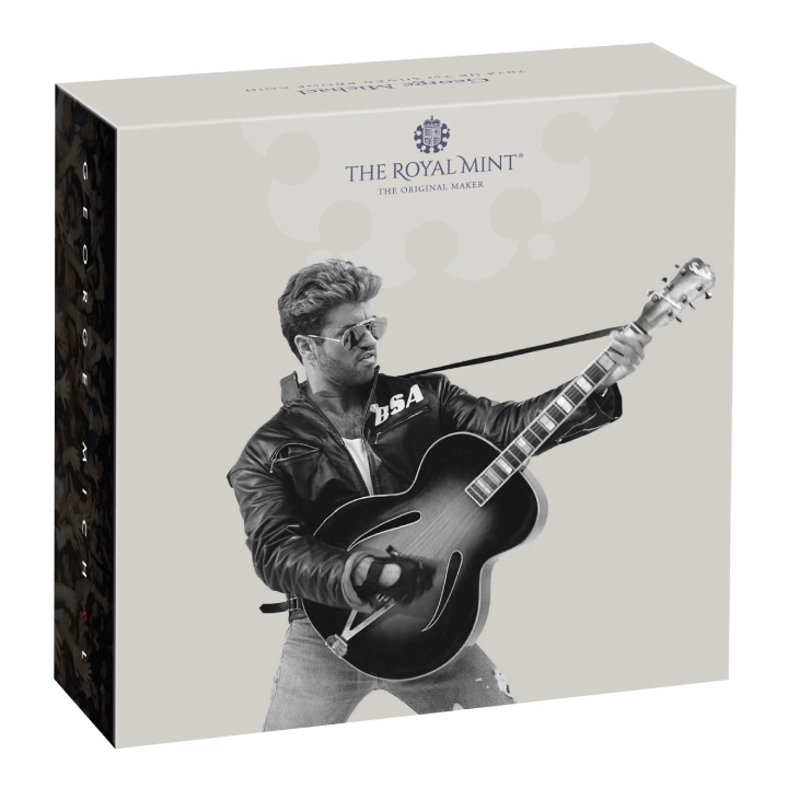 The George Michael 2 Ounce Silver 2024 Proof is a unique value celebrating one of the best-selling musicians of all time. George Michael went from youthful idol as part of the pop duo WHAM! to global superstar as a solo artist. Decades after their initial release, his hits 'Careless Whisper', 'Faith', 'Freedom! '90' and 'Last Christmas' have enjoyed enduring popularity and are regularly voted one of the UK's favourite songs. The copy is minted in Ag.999 sterling silver, weighing 2 troy ounces, 40mm in diameter, in proof standard. The mintage of the coin is 360 pieces. In addition, this remarkable piece was produced by The Royal Mint. The product has been housed in its original packaging. The coin is guaranteed by the UK government as to its legality, purity of bullion and origin of the metal, and is full legal tender in the issuer's country. The Overt shows the likeness of King Charles III of Great Britain wearing a crown, the inscription "CHARLES III∙D∙G∙REX∙F∙D" and the denomination and year, as designed by Martin Jennings.