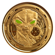 The obverse of the gold coin features an image of Queen Elizabeth II and information on the year of issue, face value of the coin, purity of bullion, weight and country of issue. The reverse of the coin features an image of an alien with glowing fluorescent eyes.Do you need help? Do you have any questions?Ask a question and we'll respond promptly, publishing the most interesting questions and answers for others.