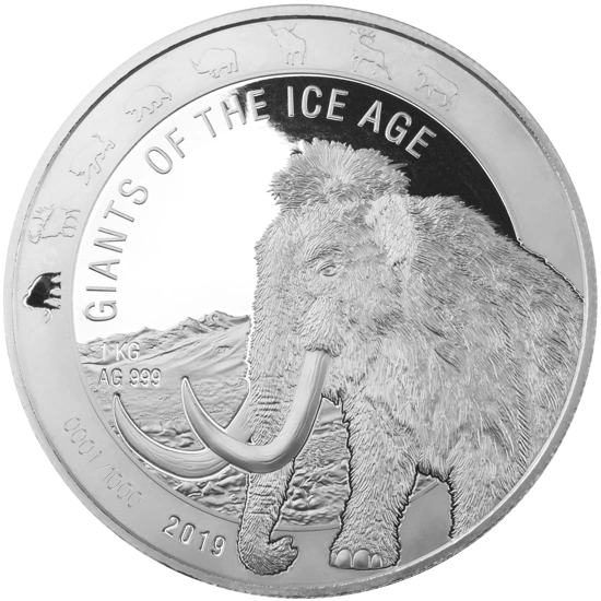 Ghana: Giants of the Ice Age - Woolly Mammoth 1000g Silver 2019