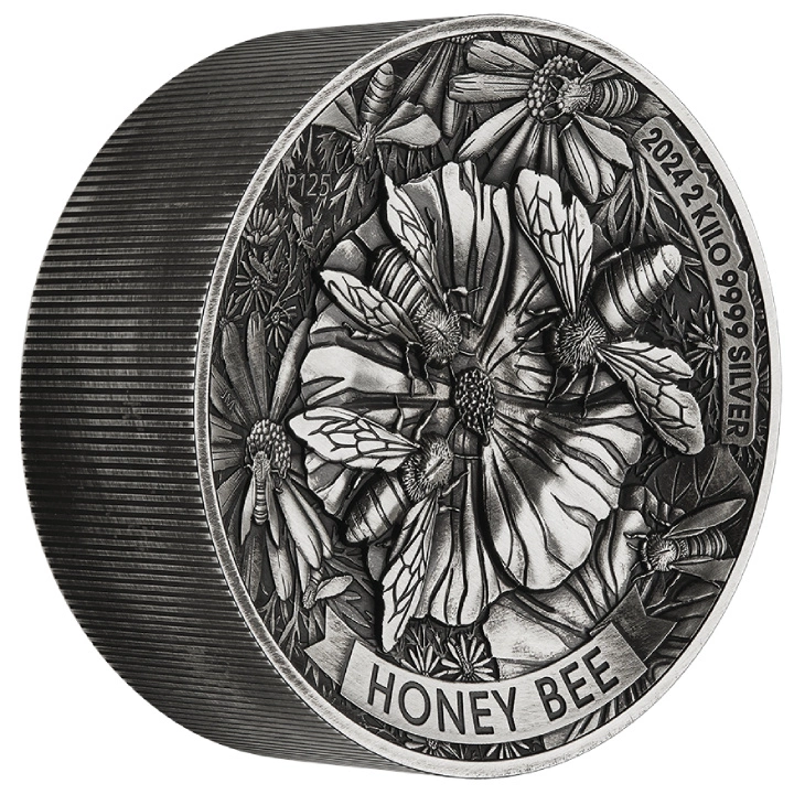Honey Bee 2000 grams Silver 2024 High Relief Antiqued Coin Commemorating Honey Bees.