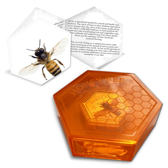 Srebrna moneta Pszczoła miodna kolorowana 1 uncja Srebra 2016 Proof to egzemplarz, który wyróżnia się nietuzinkowym designem oraz oryginalnym kształtem. Kolekcjonerska moneta z roku 2016 została wybita w kształcie plastra miodu o próbie kruszcu Ag.999 oraz wadze jednej uncji trojańskiej. Ponadto, ta srebrna moneta jest bita przez BH Mayer’s Kunstprägeanstalt GmbH na zlecenie New Zeland Post.Pszczoła miodna kolorowana 1 uncja Srebra 2016 Proof posiada limitowany nakład liczący 1 500 sztuk oraz jest dostarczana w eleganckim opakowaniu wraz z dołączonym certyfikatem autentyczności.Awers przedstawia królową Wielkiej Brytanii Elżbietę II, projektu Ian'a Rank- Broadley'a.Rewers srebrnej monety zdobi pszczoła miodna na plastrze miodu. Za projekt rewersu odpowiada Hannah Stancliffe-White. Do you need help? Do you have any questions?Ask a question and we'll respond promptly, publishing the most interesting questions and answers for others.