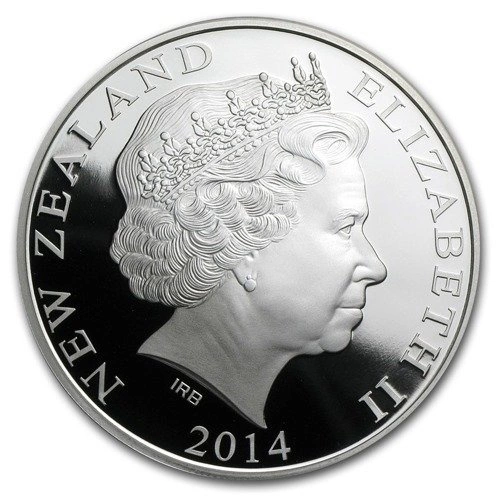 The obverse of the coin is decorated with the likeness of Queen Elizabeth II with a crown on her head. On the obverse we can also find information about the year of the coin's issue (2013) and the country of origin (New Zealand)
