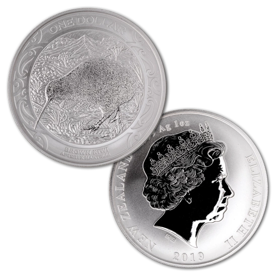 Kiwi 1 Ounce Silver Coin 2019 Prooflike coin depicts one of the representatives of New Zealand's famous family of flightless birds, the Kiwi. The 2019 coin shows the "Northern Kiwifruit," the most abundant species of the flightless bird of the kiwi family, which inhabits two-thirds of the North Island.