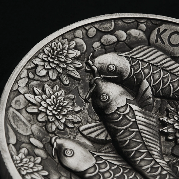 Koi Fish 2000 grams Silver 2023 High Relief Antiqued Coin