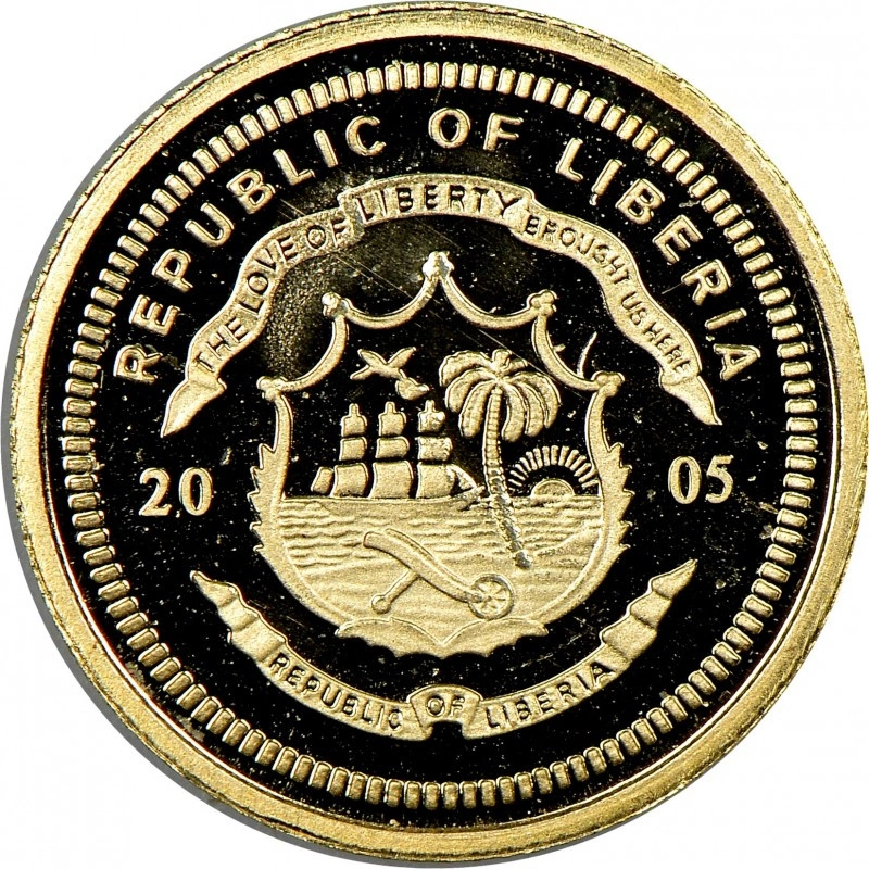 Obverse: features the coat of arms of the Republic of Liberia, surrounded by the inscription REPUBLIC OF LIBERIA and the issue date 2005. The composition emphasizes the official character of the piece.