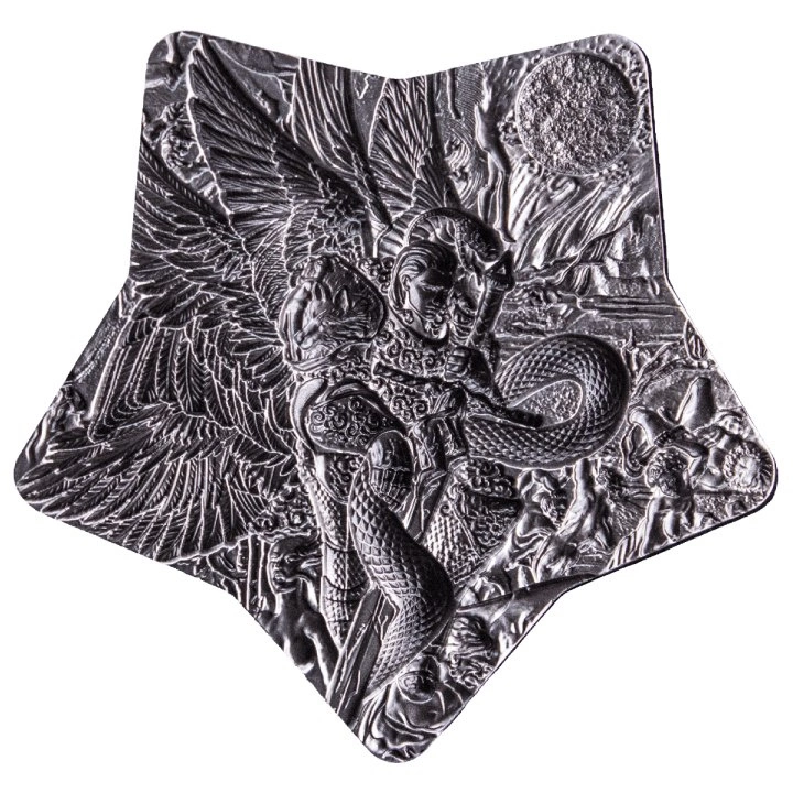 Lucifer 2 oz Silver 2023 Stackable High Relief Antiqued is an interesting collector's item. Product presents Lucifer. The word "Lucifer" means from Latin. lucem ferre - "bearer of light" and from heb. הֵילֵל - "morning star". In modern and late medieval Christian thought, one of the fallen angels.