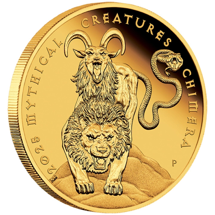 Mythical Creatures: Chimera is made from pure gold with a weight of one troy ounce and a fineness of Au.9999. It is produced by Australia's oldest mint – The Perth Mint. The Chimera is a mythical creature described as a hybrid of a lion, goat, and snake, symbolizing strength, courage, and danger. According to legend, the Chimera breathed fire, instilling fear and respect in those who encountered it.
