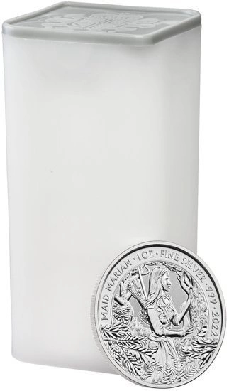 Srebrna moneta Myths & Legends: Maid Marian 1 uncja Srebra 2022 ukazuje ukochaną Robin Hooda. W angielskim folklorze ta kobieca postać cechowała się odwagą, lojalnością oraz niespotykaną urodą. Maid Marian uważana jest za jedną z pierwszych silnych postaci kobiecych w literaturze angielskiej. Walorjest drugim egzemplarzem z serii Myths & Legends. Moneta bita jest z czystego kruszcu próby Ag.999, o wadze jednej uncji trojańskiej oraz średnicy liczącej 38.61 mm. Za jej emisje odpowiada ceniony oraz zaufany producent metali szlachetnych – The Royal Mint. Co ważne, ten srebrny walor posiada nielimitowany nakład. Myths & Legends: Maid Marian to produkt, który posiada gwarancję rządu Wielkiej Brytanii oraz pełni role oficjalnego środka płatniczego na terenie kraju emitenta.Co więcej, pojedyncze monety są wysyłane w ochronnych kapslach. Na awersie uwieczniono portret Królowej Elżbiety II w koronie. Na awersie znajduje się także wartość nominalna monety. Projektantem awersu był Jody Clark. Rewers srebrnej monety przedstawia wizerunek bohaterki legend ludowych, czyli Maid Marian z kołczanem pełnym strzał z łuku na plecach, pośród Lasu Sherwood. Na rewersie znajduje się informacja o wadze i czystości kruszcu. Projektantem rewersu był Jody Clark.Packaging for the product