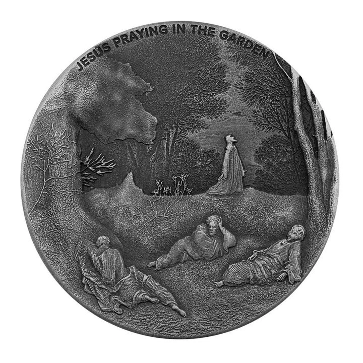 Niue: Biblical - Jesus Praying In the Garden 2 oz Silver 2021 Proof Antiqued Coin
