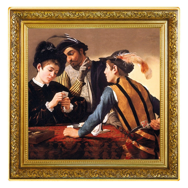 The reverse features a coloured reproduction of a work by Caravaggio - Playing Cards.