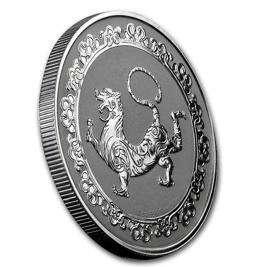 Biały Tygrys to srebrna moneta kolekcjonerska, która stanowi drugie wydanie serii Niebiańskie Zwierzęta. Jest to seria poświęcona mitycznym stworzeniom, które są połączone ze starożytną chińską praktyką – Feng Shui. Ten unikatowy egzemplarz został wybity z czystego srebra próby 999, o wadzę jednej uncji trojańskiej. Za jego wybicie odpowiada znany producent wyrób lokacyjnych - New Zealand Mint. Dodatkowo ten srebrny walor posiada limitowany nakład, liczący 10 000 sztuk. Awers srebrnej monety zdobi podobizna Królowej Elżbiety II oraz informację o kraju emitenta, wartości nominalnej i roku wybicia. Rewers ukazuje postać białego tygrysa oraz informację wadzę monety oraz próbie użytego kruszcu.