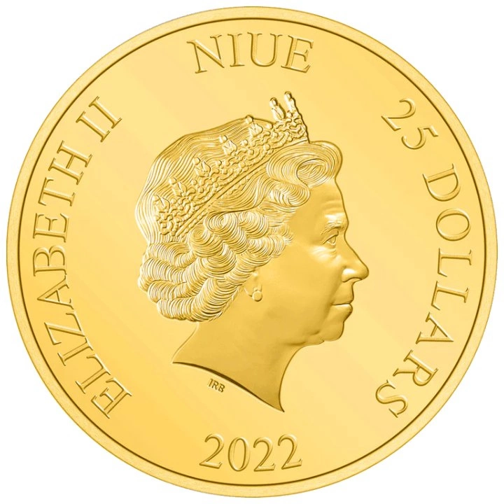 Obverse the gold coin is decorated with the likeness of Queen Elizabeth II. The obverse also shows the issuer's country, face value and year of minting. The designer of the obverse was Ian Rank-Broadley.