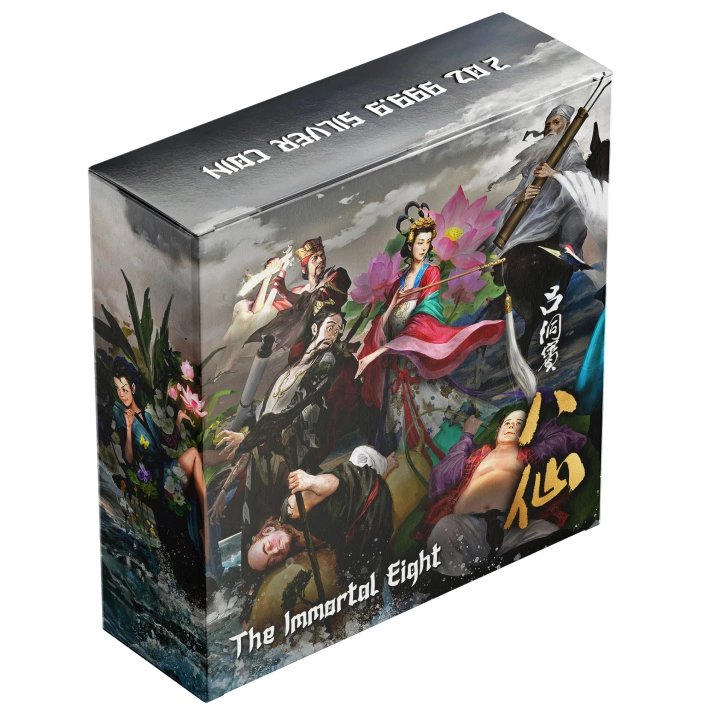 The Silver Coin from Niue: Eight Immortals – Lü Dongbin Colorized, Gold-Plated 2 oz Silver 2023 Ultra High Relief Antiqued Coin is the second release from the "The Immortal Eight" series. Lü Dongbin is one of the most famous of the Eight Immortals in Chinese mythology and Taoism. He is often depicted as a scholar, carrying a sword to ward off evil and a fan. He is revered by the sick and respected as a wise scholar.