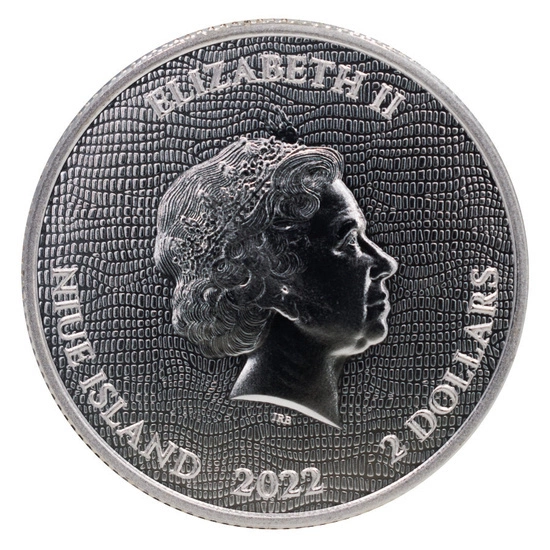 The obverse of the silver coin depicts an image of Queen Elizabeth II, the inscription "ELIZABETH II", "NIUE ISLAND 2022" and information on the face value of the coin. The obverse was designed by Ian Rank-Broadley.
