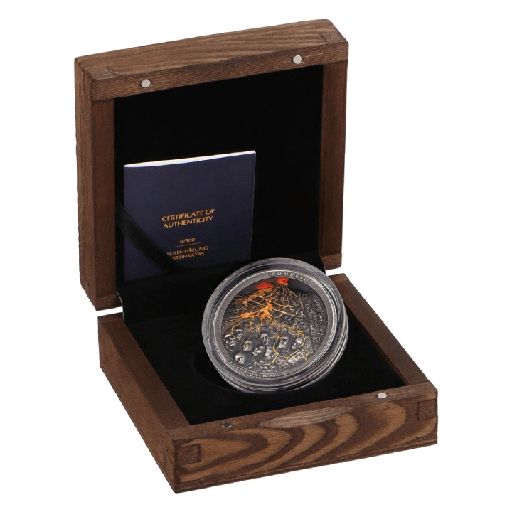 The coin is minted in Ag.999 silver, weighing 62.2 grams, 50 mm in diameter, antiqued and high relief. The coin is gold-plated in yellow gold. The excellent Lithuanian Mint is responsible for the limited issue of 500 pieces. The product is delivered in individual original packaging. The coins are full legal tender in the issuer's country.