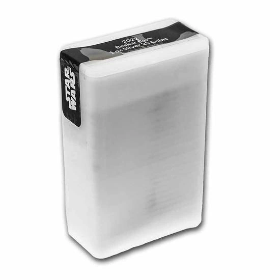 The Niue: Star Wars Mandalorian Beskar bar coin is made of pure Ag.999 silver and weighs 1 troy ounce. The product measures 51mm x 23mm and the mintage is 50,000 pieces. Copies are also available in mint tubes of 25 pieces and in bulk packs of 300 pieces. The product is guaranteed by the Government of Niue as to legality, purity of bullion, minted quality and is legal tender in the issuing country.The Overt of the silver coin features the Niue coat of arms with information on weight, purity of bullion, year of mintage, face value, along with the official Lucasfilm copyright for further authentication. The Rewers depicts the officially licensed undulating surface and galactic imperial bar stamp of Beskar, as seen in The Mandalorian series.