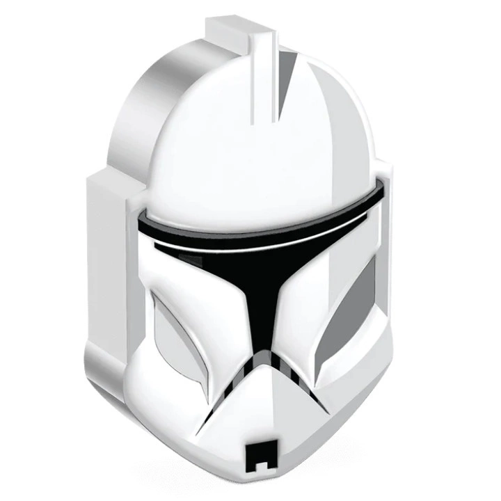 Niue: Star Wars The Faces of the Empire - Clone Trooper (Phase I) colored 1 ounce Silver 2022 Proof is a coin from the " The Faces of the Empire" series, which presents the helmet of the clone trooper phase 1. They represented a new era of galactic warfare. They were genetically engineered to serve the Army of the Republic against Separatist Alliance forces in the Clone Wars.