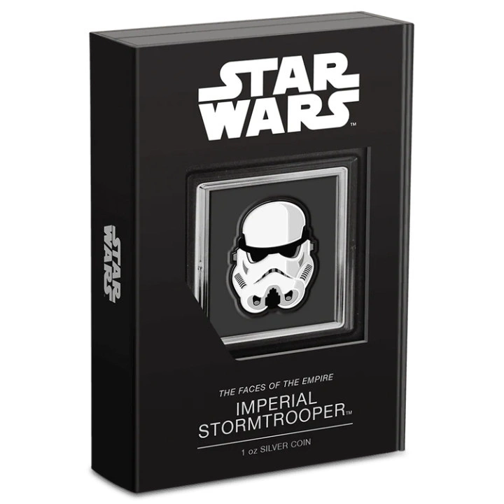 Niue: Star Wars The Faces of the Empire - Imperial Stormtrooper colored 1 oz Silver 2021 Proof is a coin from the " The Faces of the Empire" series, which presents the "face" of an imperial stormtrooper and reflects the shape of his awe-inspiring helmet.