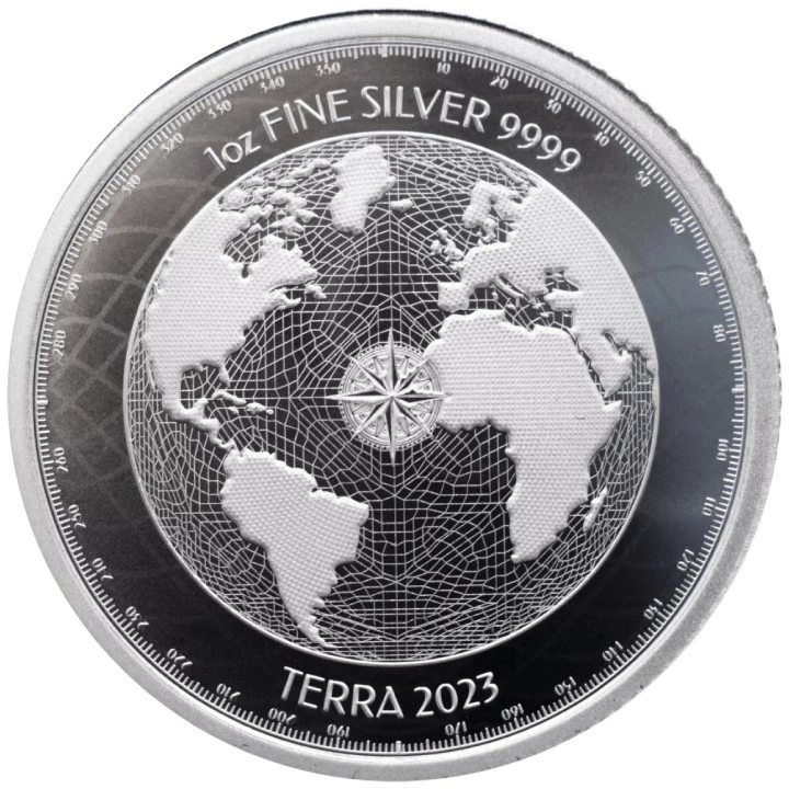 The obverse shows a globe, the Niue coat of arms and the inscriptions: "NIUE ISLAND", "TERRA 2023". The obverse shows the face value of the coin.The Rewers also depict a globe and the weight and purity of the bullion, as well as the inscription "TERRA 2023".