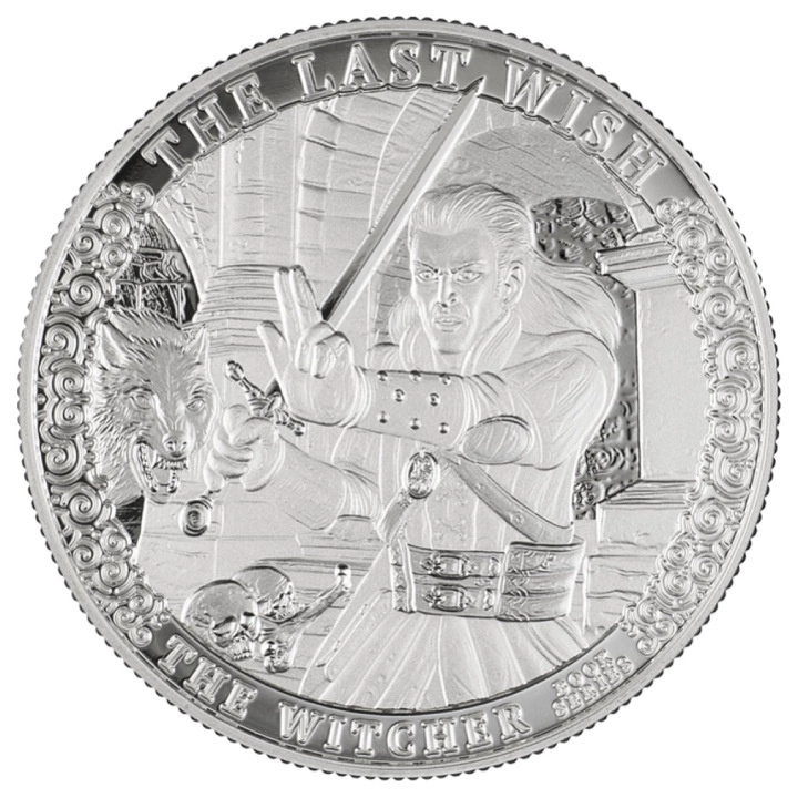 Niue: The Witcher Book Series - The Last Wish 2 ounces Silver 2023 is a silver copy of "The Witcher Book Series," which refers to Andrzej Sapkowski's book "The Witcher." "The Last Wish" - "The Last Wish" is one of the short story collections that has gained immense popularity not only in Poland, but all over the world, including through the computer game, and then through the TV series. The main character, Geralt of Rivia, is a witcher, that is, a person who, in exchange for payment, gets rid of numerous monsters.