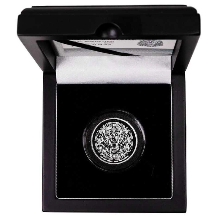 Platynowa moneta Niue: Truth - Roaring 1 uncja Platyny 2023 Reverse Proof prezentuje Ryczącego Lwa, identyfikowanego jako Lew Judy przez symbol Aleph Tav את na koronie. Walor pochodzi z serii The Truth. Od 2018 roku, w każdym roku ukazują się dwie monety przedstawiające Ryczącego Lwa oraz Drzewo Życia. Produkt zawiera mikro-grawerowany napis, który znajduje się w Liście do Efezjan 6:14