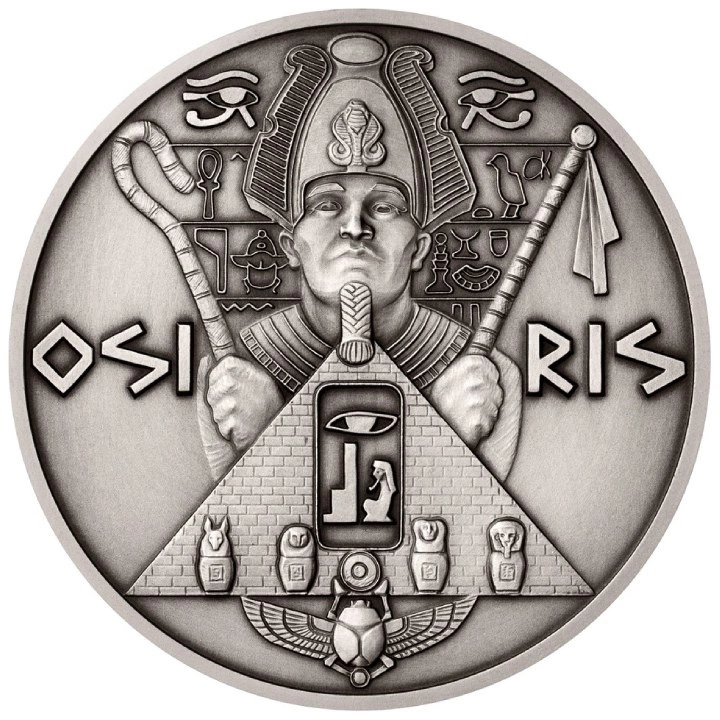 Reverse depicts the image of the god Osiris holding royal artifacts. The reverse side bears the inscription "OSIRIS".