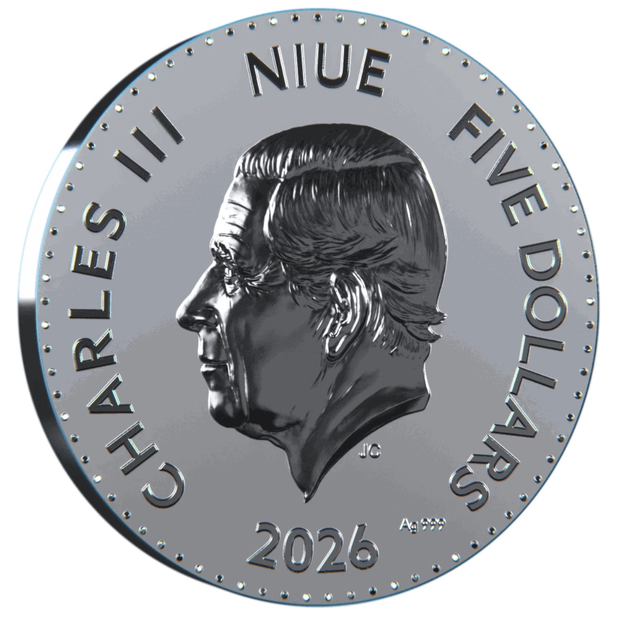 Obverse shows the effigy of King Charles III with his name, the year of issue 2026, and the name of the issuing country, Niue.