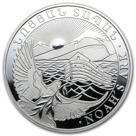 The Noah's Ark silver coin is a popular investment product, minted in a weight of one ounce and a bullion purity of 999. This interesting currency is issued by the Central Bank of Armenia. However, the production process itself takes place at a private German mint - Leipziger Edelmetall Verarbeitung. Coins with the image of the Ark are guaranteed by the Government of the Republic of Armenia as to their legality, purity of the sample and origin of the bullion, and are full legal tender in the country. It is worth mentioning that in addition to its investment potential, the coin also has a historical character. According to the Christian Old Testament, Noah's Ark was built by God's command to shelter Noah's family and animals from the Great Flood. During the journey through the eternal waters, the peak of Mount Ararat appeared to Noah. Having reached it, the Ark completed its journey, beginning a new era. The obverse of the coin, designed by Eduard Kurghinyan, depicts the Ark on a rough sea, with Mount Ararat in the background and the rising sun. The mountain is named after Ara, a Bronze Age idol. Ara was the god of death and rebirth. In the centre of the coin is a dove in flight over the waters of the Flood, holding an olive branch in its beak. The edge bears the inscription 'Noah's ark', in English. The reverse of the coin depicts the Armenian Coat of Arms with the minted denomination of 500 drams and the year of issue. On the right-hand side, below the coat of arms, the weight and the silver sample in which the coin was struck are shown. At the bottom edge is the inscription "Republic of Armenia". Producer
