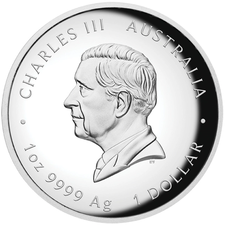 The coin is struck from .9999 fine silver, weighs 1 troy ounce, and has a diameter of 32.6 mm. The limited mintage is produced by the prestigious precious metals manufacturer, The Perth Mint. The coin is backed by the Australian government, ensuring the legality and origin of the metal, and it is also legal tender in the issuing country. It features a security detail in the form of a micro-engraved letter on the reverse.