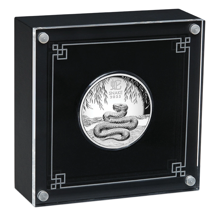The Perth Mint: Lunar III - Year of the Snake 1 oz Silver 2025 Proof High Relief is the sixth release in the Lunar III series. Previous coins in the series included the Year of the Mouse 2020, Year of the Ox 2021, Year of the Tiger 2022, Year of the Rabbit 2023, and Year of the Dragon 2024. The Lunar series refers to the 12 animals that represent the Chinese lunar calendar.