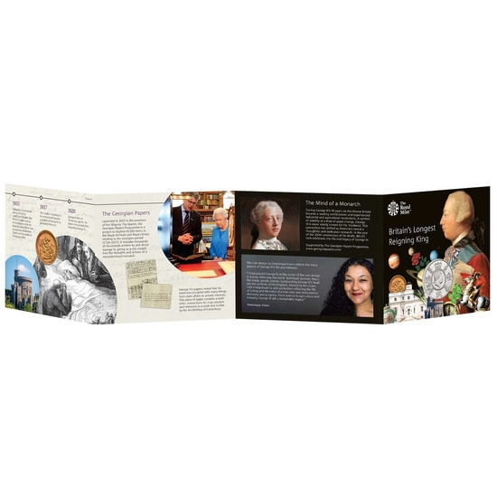 Moneta Panowanie Jerzego III Miedzionikiel 2020 to unikatowy produkt, który upamiętnia i przedstawia Króla Wielkiej Brytanii, elektora. Okres panowania Jerzego III przebiegał od 1760 do 1820 roku.Jest to walor bity ze stopu miedzi i niklu, o wadze 28.28 grama oraz o średnicy 38.61 mm. Ponadto, ten niezwykły egzemplarz został wyprodukowany przez mennicę The Royal Mint. Egzemplarz posiada indywidualne, certyfikowana opakowanie. Awers przedstawia Królową Elżbietę II oraz wartość nominalną i rok bicia monety. Projektantem awersu był Jody Clark. Rewers monety przedstawia profil Jerzego III. Projektantem rewersu był Dominique Evans.Packaging for the product