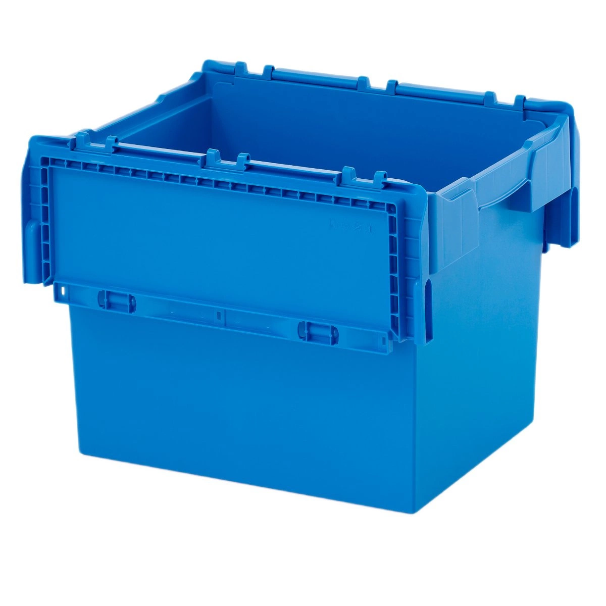 Used reusable container made of durable polypropylene, in very good condition. Thanks to its slightly tapered shape, empty containers can be nested inside one another, and when closed with the lid, they can be stacked securely. This solution allows for significant space savings during storage and transport.