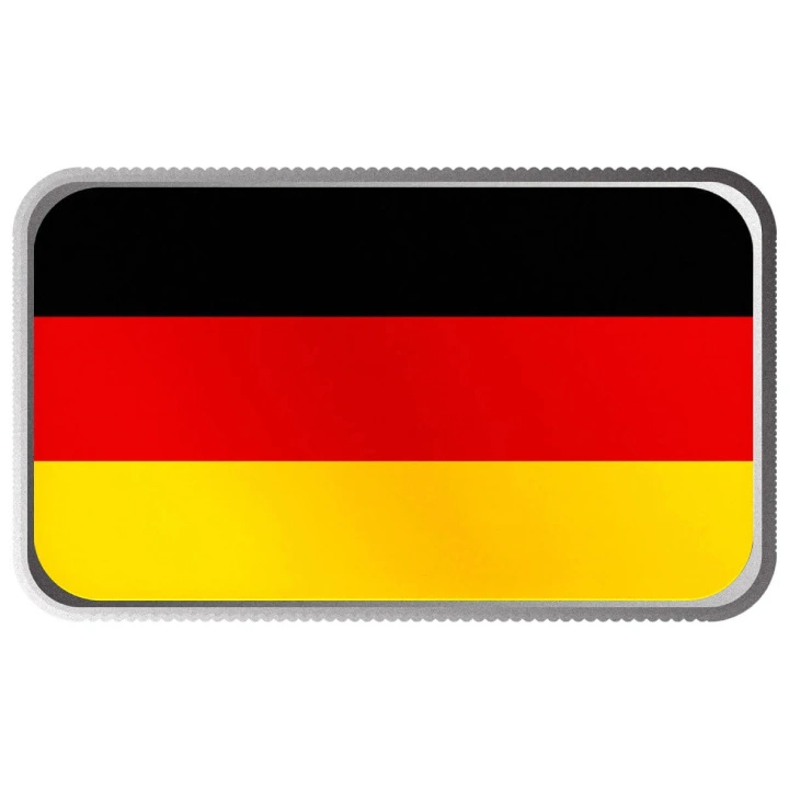 The Scottsdale Mint - Flag of Germany bar weighing 1 ounce of silver is a unique investment and collectible product, part of the "Country Flags" series. Made of pure silver with a fineness of Ag.999, this bar combines the highest quality metal with a colorful, symbolic design.