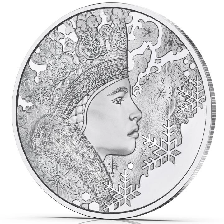 Secrets of Snow 20 Euro Silver 2023 Proof coin is a coin that refers to the season of winter. The cylinder on the obverse shows a snowflake, which additionally contains a light blue crystal.