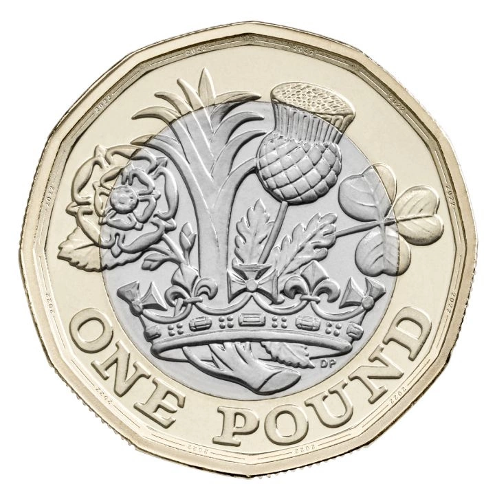 the official coin portrait of King Charles III of Great Britain, designed by Martin Jennings. The obverses also show the year of minting.