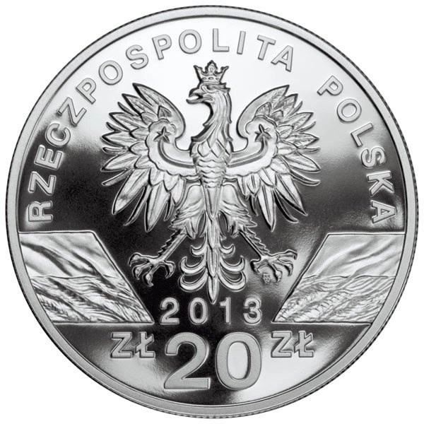 Obverse of the NBP coin shows the crowned eagle, the inscription “RZECZPOSPOLITA POLSKA”, the year of issue 2013, and the face value.