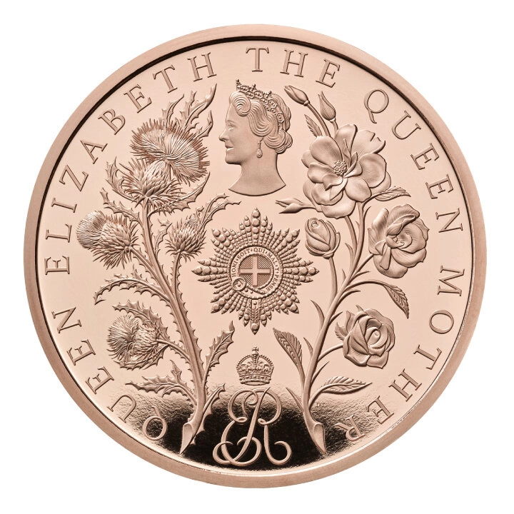 The specimen is minted in Au bullion.916.7, in standard proof. Values include denominations of £5, £2, £2, 50p, 50p. The products have weights and diameters in sequence: 39.94 g and 38.61 mm, 15.98 g and 28.40 mm, 15.98 g and 28.40 mm, 15.50 g and 27.30 mm, 15.50 g and 27.30 mm. In addition, the £2 coins are rose gold plated.