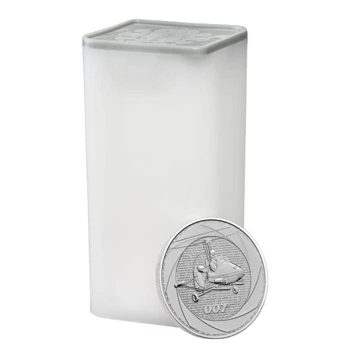 The Rewers of the coin depicts a scene from the film 'You Only Live Twice', where James Bond flies in a 'Little Nellie' windsock, as well as the 007 logo and the date of issue.