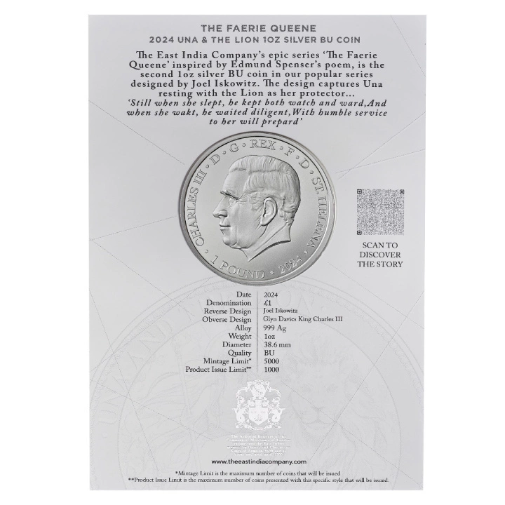 St Helena: Faerie Queene - Una & Lion 1 oz Silver 2024 (coin in the card)