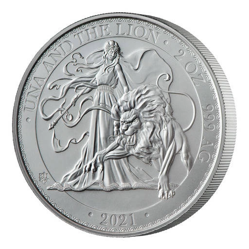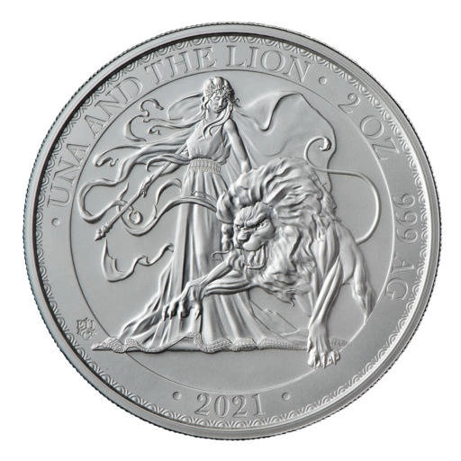 St Helena Una and the Lion 2 oz Silver 2021 coin is the second piece in the new St Helena Una and the Lion series. The story of Una and the Lion was written by poet Edmund Spencer in 1590.