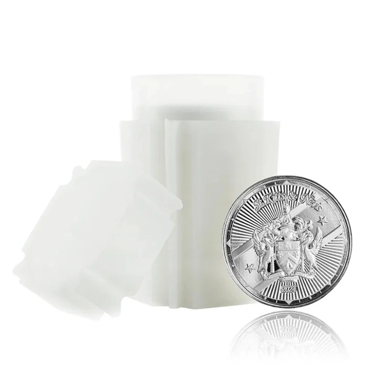 The coin St. Kitts & Nevis: Coat of Arms 1 oz Silver 2024 Prooflike is a remarkable tribute to the heritage, unity, and strength of the twin islands. The national coat of arms, rendered with exquisite precision, symbolizes not only sovereignty but also tells the story of generations who shaped the identity of the nation.