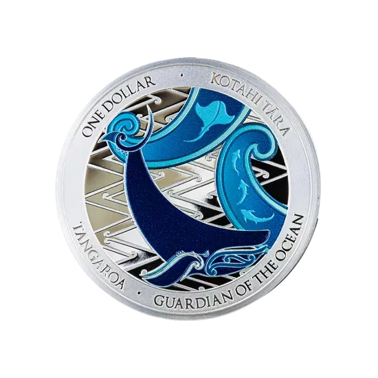 Tangaroa Strażnik Oceanu: Zestaw 2 monet kolorowanych 2 uncje Srebra 2021 to zestaw, który przedstawia Tangaroa, który w mitologii Maorysów był strażnikiem wszystkich oceanów, wód oraz stworzeń morskich. Jest to pierwszy zestaw poświęcony mitologicznym, maoryskim postaciom. Monety posiadają nominał o wartości $1. Zestaw posiada limitowany nakład, liczący jedyne 400 sztuk. Zestaw ten będzie znakomitym uzupełnieniem każdej kolekcji.Te bulionowe walory zostały wyprodukowane z czystego kruszcu próby Ag.999. Za produkcję monet odpowiada B. H. Mayer’s Kunstprägeanstalt GmbH. Zestaw monet posiada oryginalne, certyfikowane opakowanie.Awers ukazuje wizerunek Królowej Elżbiety II oraz informacje o dacie bicia, wadze i czystości kruszcu. Projektantem awersu był Ian Rank-Broadley. Na rewersie jednej z monet przedstawiony jest kolorowany wizerunek Tangaroa. Na drugiej monecie ukazane jest kolorowane stworzenie morskie. Na rewersach monet znajduje się informacja o wartości nominalnej. Projektantem rewersu był KE Design. Producer