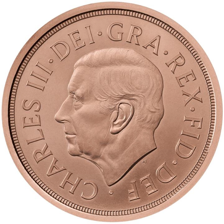 The obverse shows the likeness of King Charles III of Great Britain, the inscription "CHARLES III∙DEI∙GRA∙REX∙FID∙DEF", designed by Martin Jennings. The Rewers depicts a scene of Saint George slaying a dragon. The date of issue is also indicated at the bottom of the gold coin. The designer of the reverse was Benedetto Pistrucci.