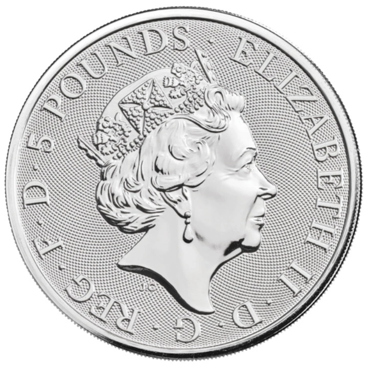 The obverse of the silver coins features the likeness of the Queen of Great Britain, Elizabeth II, and information about the coin's face value. The designer of the obverse was Jody Clark. The Rewers of each of the 10 coins depict an image of a different Queen's Beast and an image of the Completer. In addition, the reverse features information on the date of issue, purity of the bullion and weight of the coin.